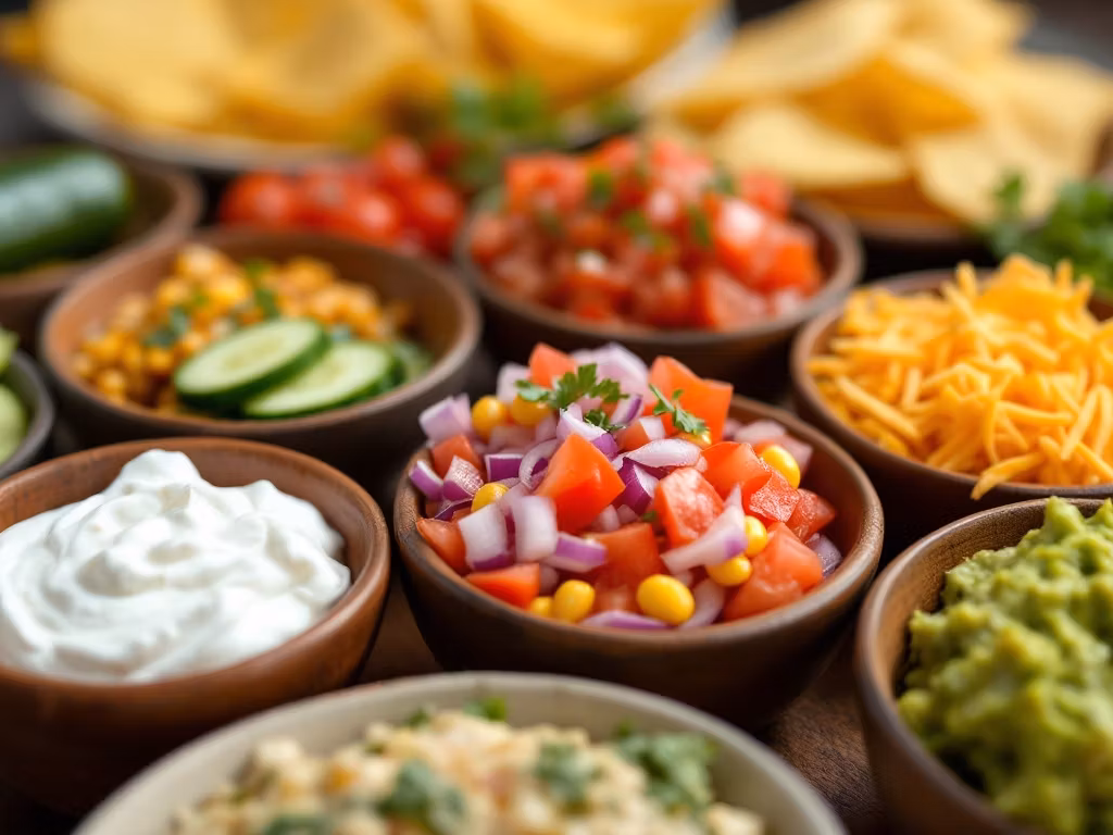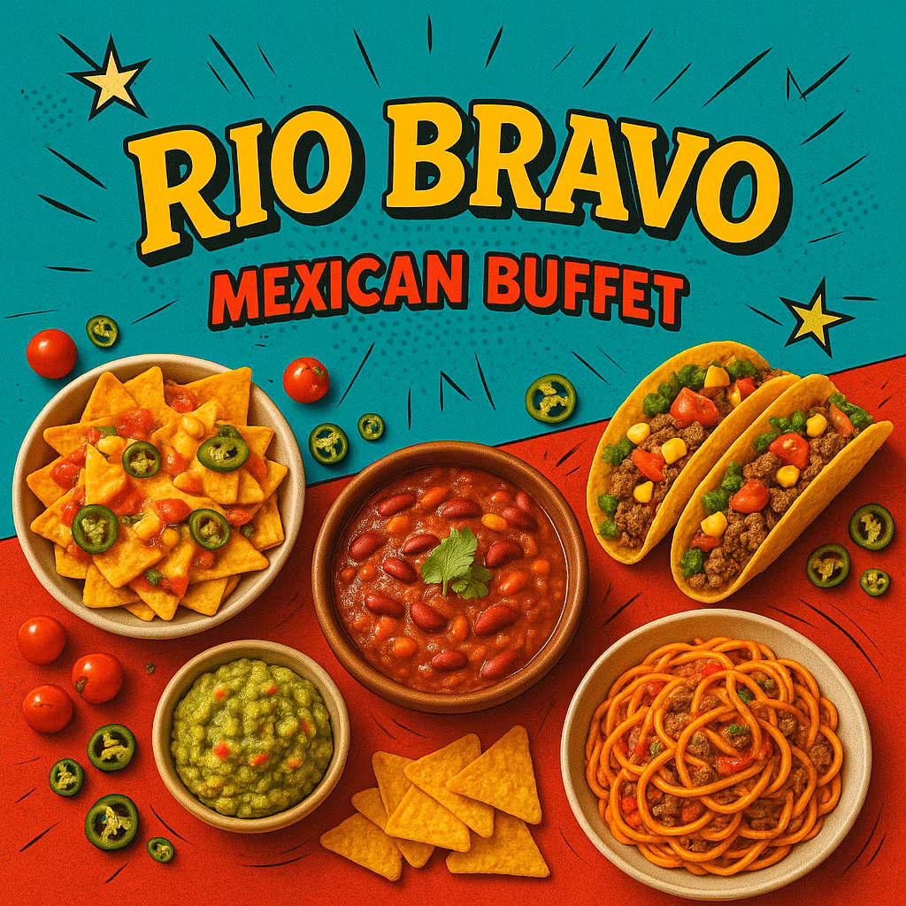 CHILI CON CARNE A LA JOHN WAYNE - EN KRAFTIG GRYTERETT MED KJØTT, BØNNER, OG KRYDDER. TACOS MED OKSEKJØTT A LA DEAN MARTIN - SAFTIG OKSEKJØTT I TACOSKJELL, SERVERT MED ET UTVALG AV TILBEHØR. • ENCHILADA A LA RICKY NELSON - FYLT MED OKSEKJØTT, TOPPET MED SAUS OG BAKT TIL PERFEKSJON. • VÅRRULLER MED OKSEKJØTT - SPRØ VÅRRULLER FYLT MED KRYDRET OKSEKJØTT. TILBEHØR TIL TACOS - TACO SHELLS, TORTILLACHIPS, AGURK, TOMAT, RØDLØK, MAIS, RØMME, OST, TOMATSALSA, OG GUACAMOLE. BAKTE BØNNER I TOMATSAUS - EN SMAKFULL BØNNERETT SOM PASSER GODT TIL DE FLESTE RETTER. • NYKOKT RIS - PERFEKT SOM BASE FOR MANGE MEKSIKANSKE RETTER. MANGO SALAT MEXICO CITY - EN FRISK OG SØT SALAT MED MANGO OG ANDRE GRØNNSAKER. CHUNKY BEAN SALSA - EN FYLDIG SALSA MED BØNNER FOR EKSTRA TEKSTUR OG SMAK. BLØTE TORTILLAS - PERFEKT FOR Å LAGE MYKE TACOS ELLER BURRITOS.