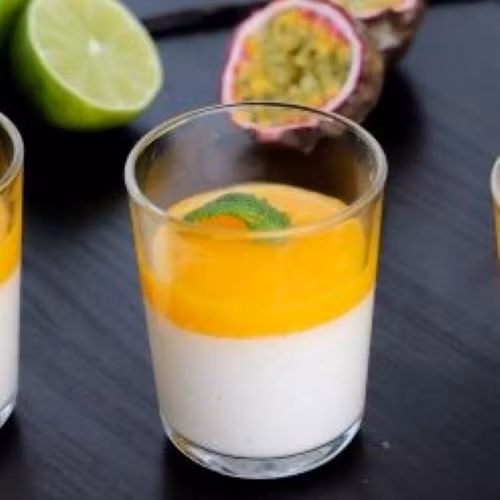 La deg friste av vår forfriskende pasjonsfrukt mousse, en lett og luftig dessert som bringer en smak av tropene til bordet. Denne moussen er laget med ekte pasjonsfruktpuré, som gir en perfekt balanse mellom sødme og syrlighet. Den silkemyke teksturen gjør hver skje til en ren nytelse, og den fruktige smaken gir en oppfriskende avslutning på ethvert måltid.