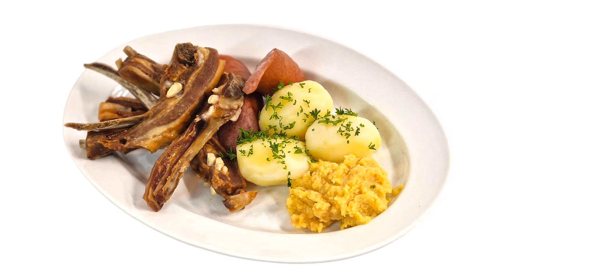 🥔 Tilbehør som rotmos og kokte poteter – perfekt tilberedt for å komplementere hovedretten.