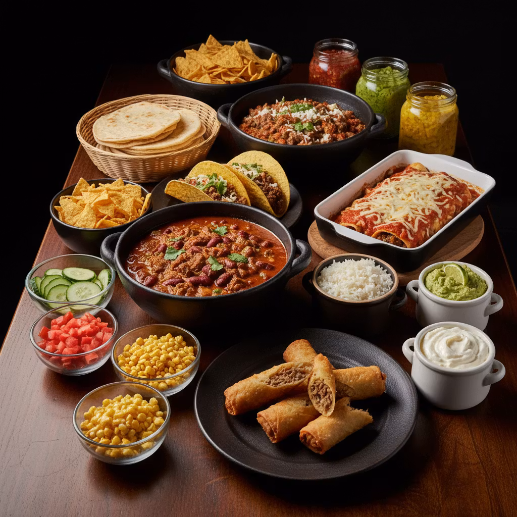 Tacos med oksekjøtt à la Dean Martin – saftig oksekjøtt i tacoskjell, servert med friskt tilbehør.
