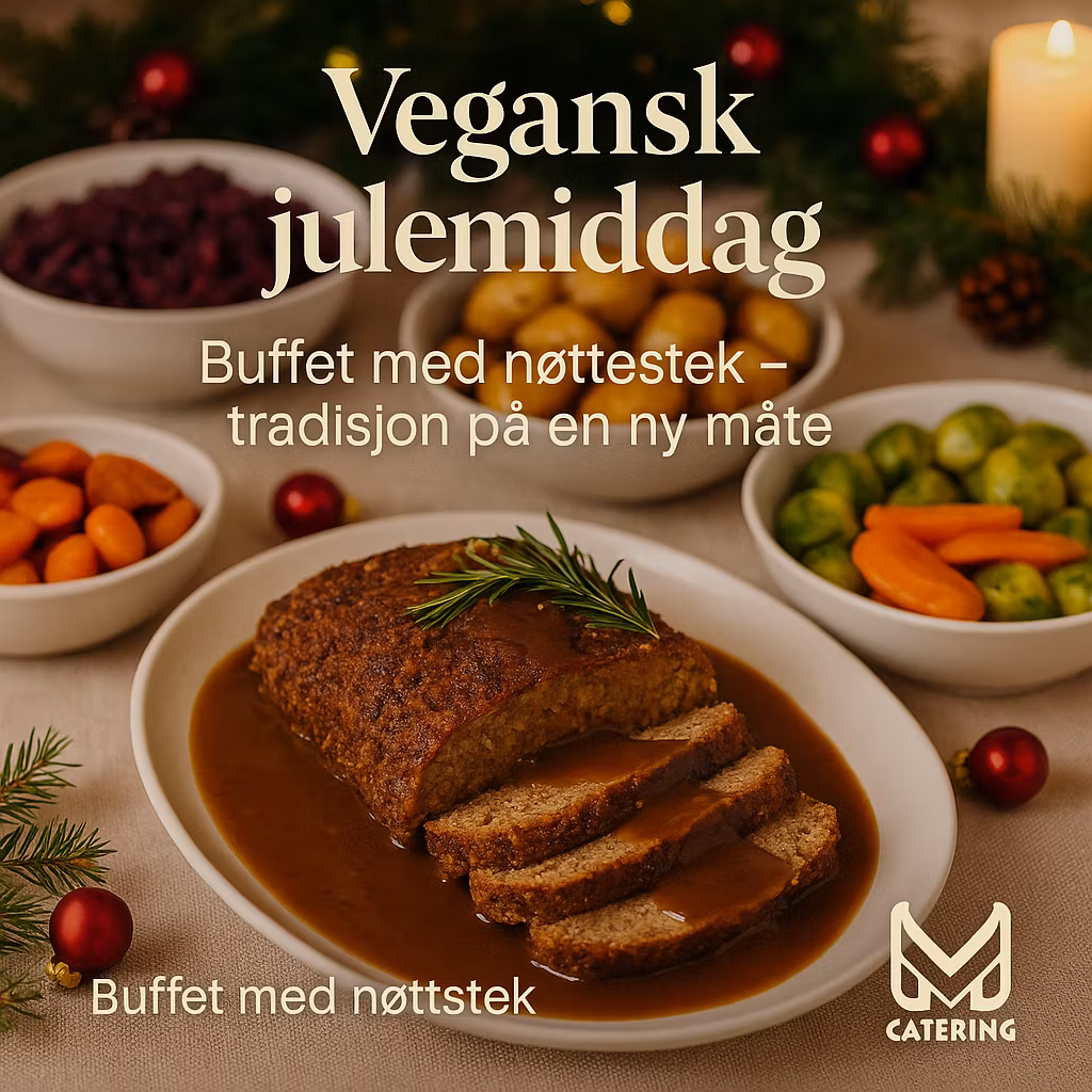 NØTTESTEK • VEGANSK JULEPØLSE • VEGITAR KAKER • SURKÅL • POTETER • JULESAUS MED SVISKER OG EPLE.